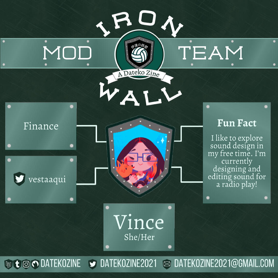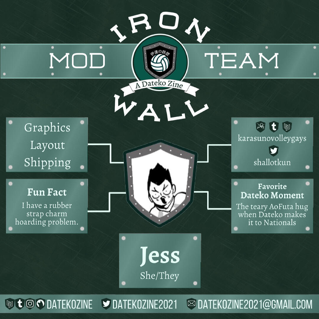 Iron Wall is a zine focusing on the Dateko Team who is recognized for their defense with their blocks. They are the Iron Wall!This lovely team is somehow underrated and this zine will be the opportunity to show our love to the members! Even with their intimidating aura, we all know they are just a bunch of goofs!Go, go, let’s go, let’s go, Dateko!